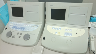 聴力検査、鼓膜の動きの程度を調べるティンパノメトリー検査、語音聴力検査を行います。